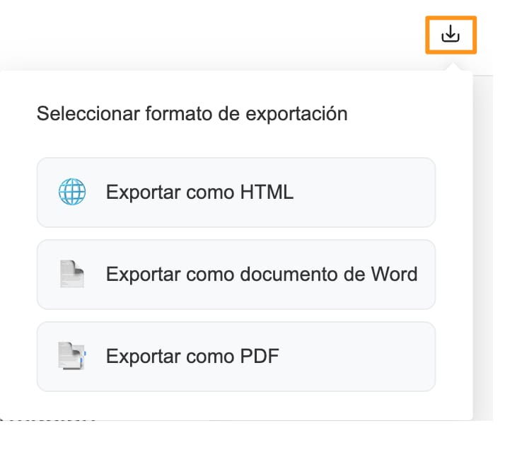 Paso 6 - Exportación funcional: Descarga en formato Word, PDF o HTML para usar directamente o seguir editando